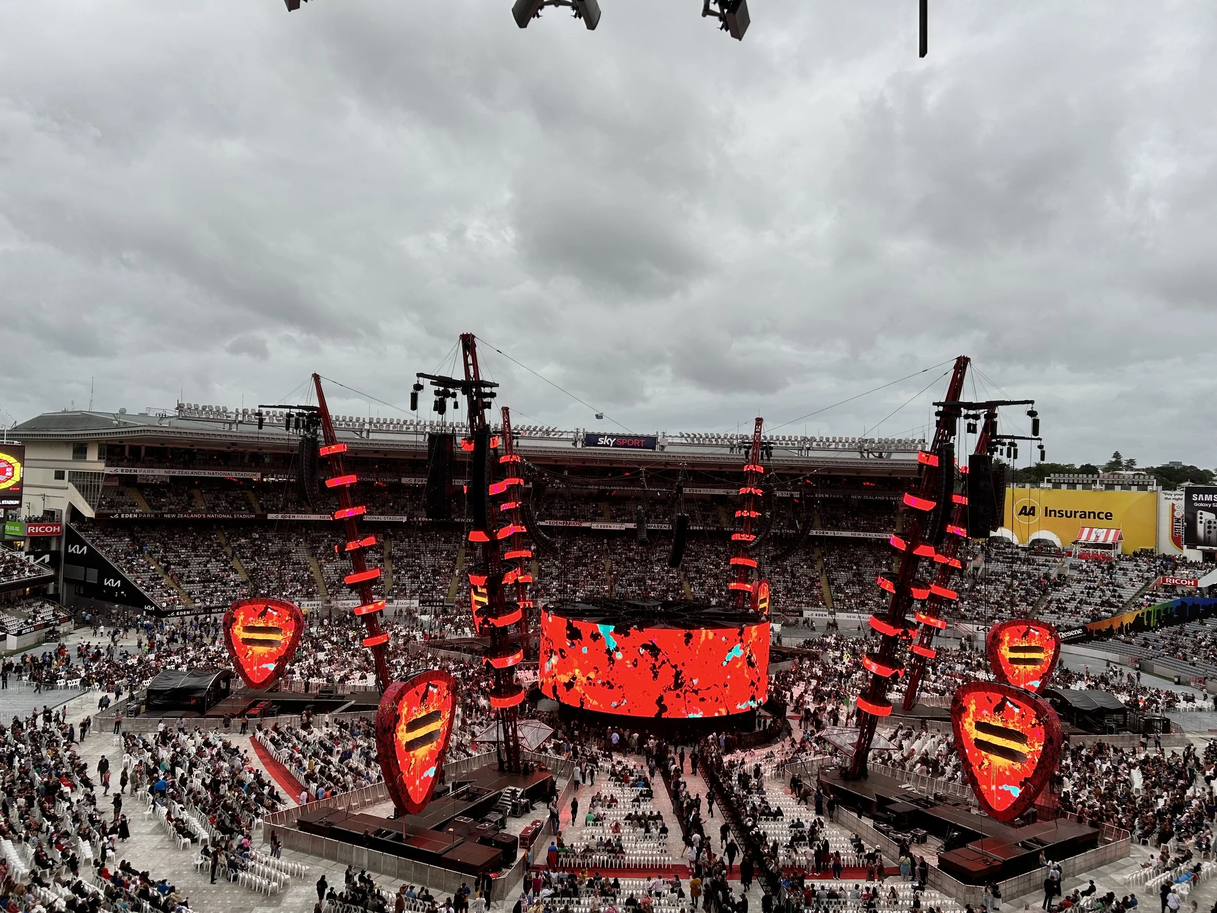 I wanted to write this blog and talk about the similarities or differences that I noticed at the Ed Sheeran concert in the two different geographical locations. He played his Mathematics World Tour at Eden Park. I love that Eden Park has become a major concert venue. There’s just a different vibe in attending any event at New Zealand’s national stadium. I love it for a multitude of reasons, and the biggest one being the transport accessibility. The ease of taking the train for free to and from the concert. Don’t quote me on the exact numbers, but he did sell out both his shows in Auckland. That’s roughly 50,000 patrons each night, and with shows on two nights, that’s 100,000 patrons.